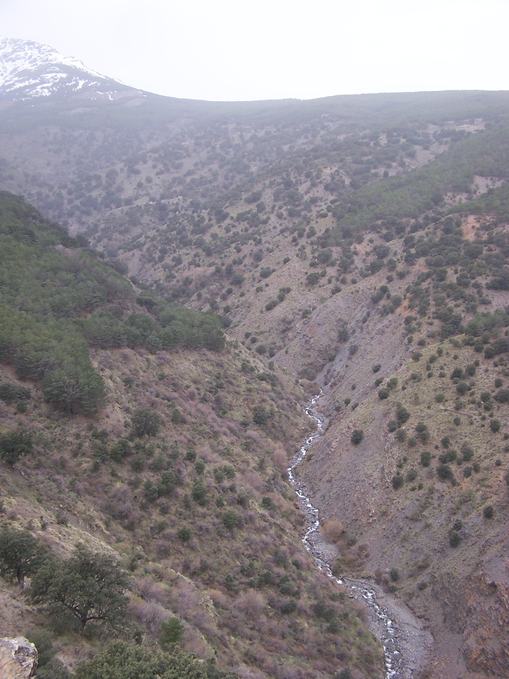 Abrucena). Al llegar al fondo, el camino gira a la izquierda y cruza el río por