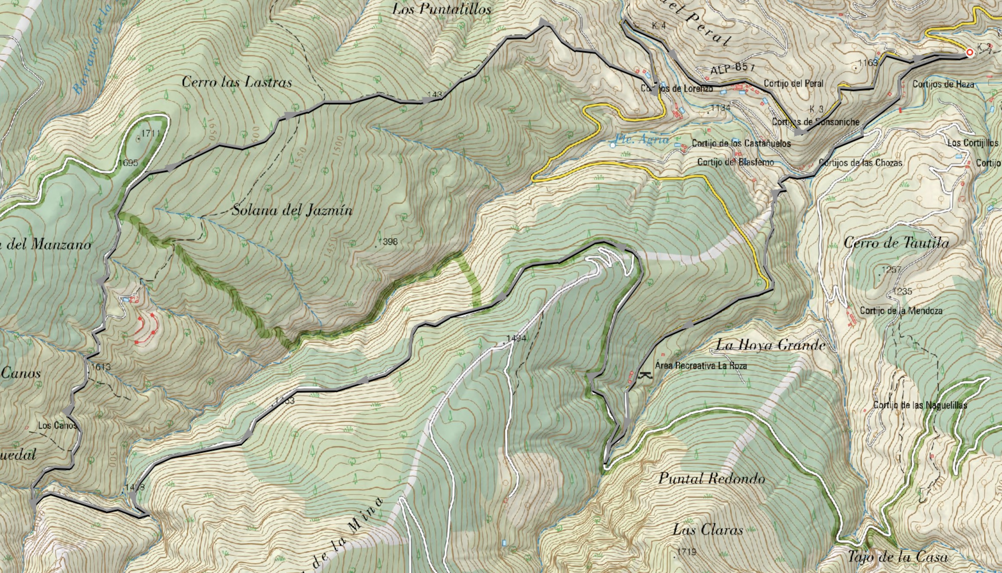 la Loma de los Puntalillos. La pendiente es bastante pronunciada ya que bajamos