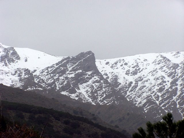 ver al fondo la Peña Horadada. La vegetación empieza a cambiar y los pinares